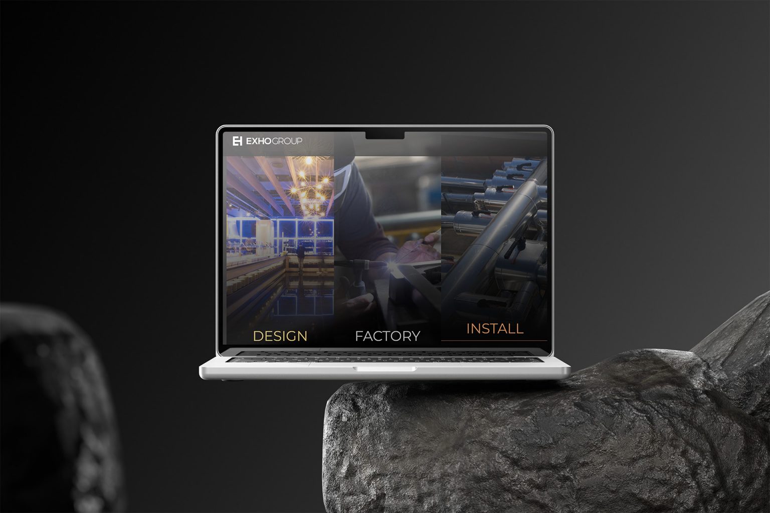 EXHO group es trobava en un moment clau de creixement i necessitava redefinir la identitat de cadascuna de les seves empreses. El repte anava més enllà d'un redissenyo: implicava construir un univers visual renovat i coherent que abastés identitat corporativa, nova web, contingut audiovisual i material de papereria.